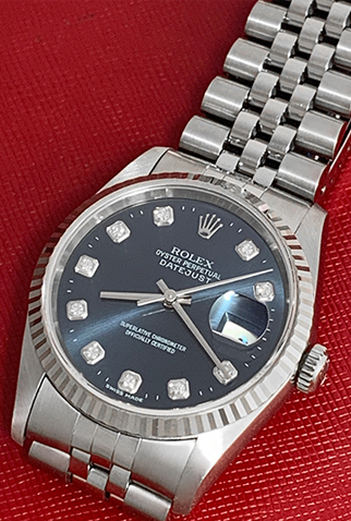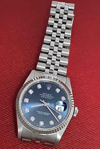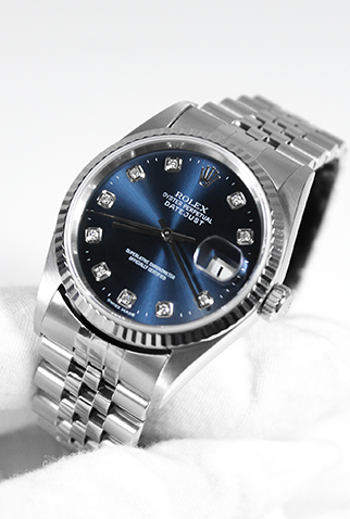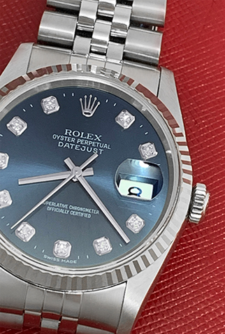 Case Material: Stainless Steel case with 18k White Gold fluted bezel (36mm dia.)