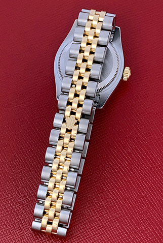 Case Material: Stainless Steel case with 18k Yellow Gold fluted bezel (26mm dia.)