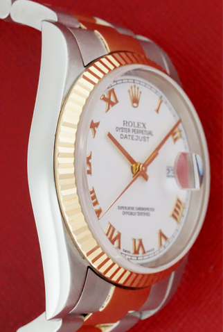 Dial: White Dial with yellow gold Roman numerals
