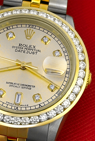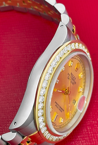Case Material: Stainless Steel & 18k Yellow Gold custom 3.25 ct. channel set Diamond bezel (36mm dia.)