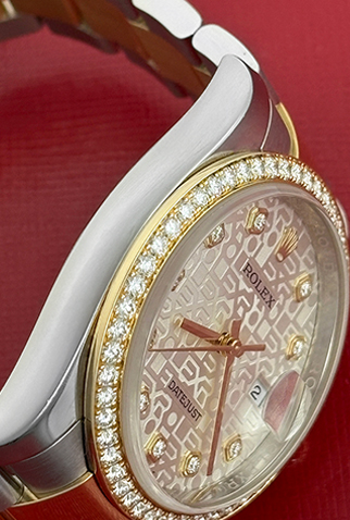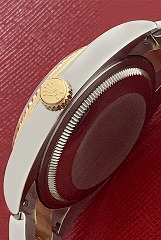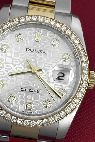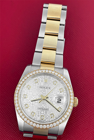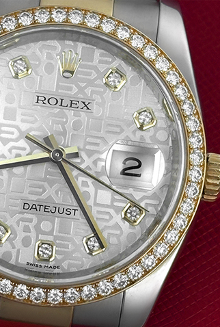 Case Material: Stainless Steel case with 18k Yellow Gold Rolex Diamond bezel (36mm dia.)