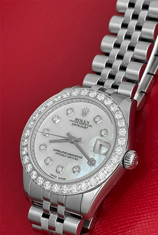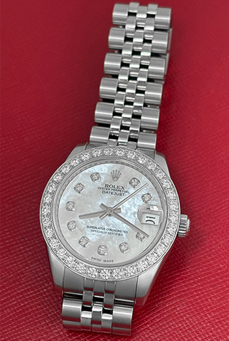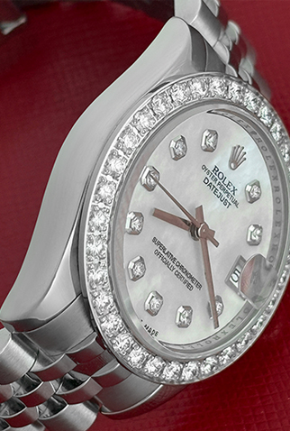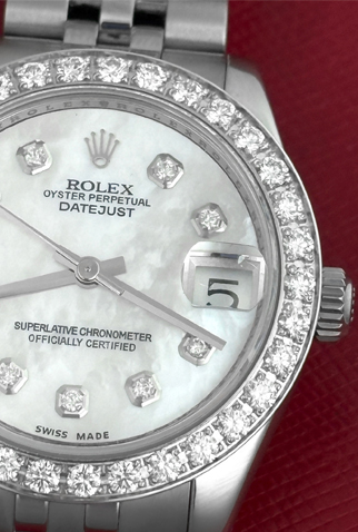 Dial: Custom Mother of Pearl Dial with custom Diamond hour markers