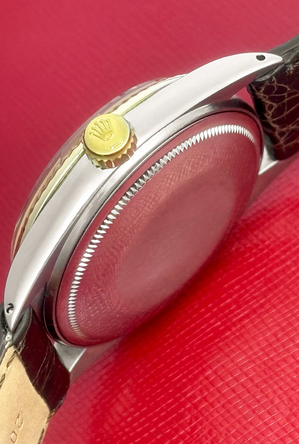 Strap: Dark brown alligator strap with Stainless Steel buckle