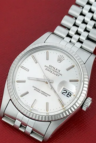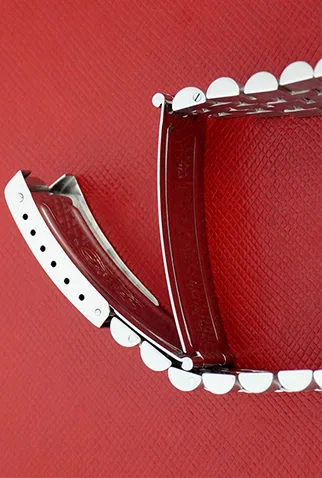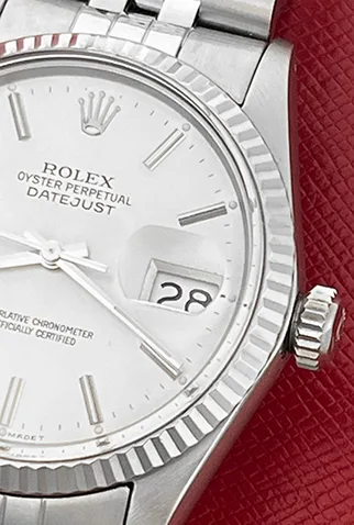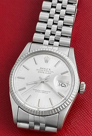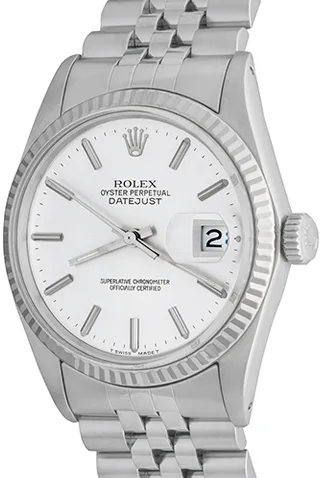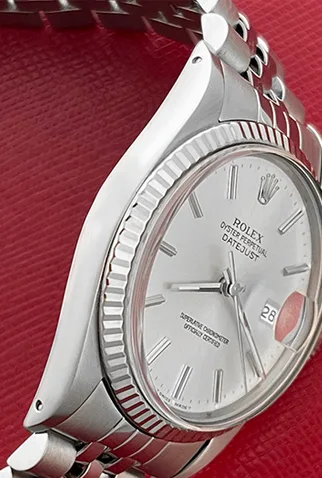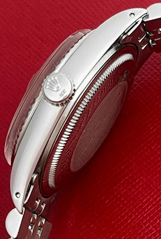Case Material: Stainless Steel case with 14k White Gold fluted bezel (36mm dia.)