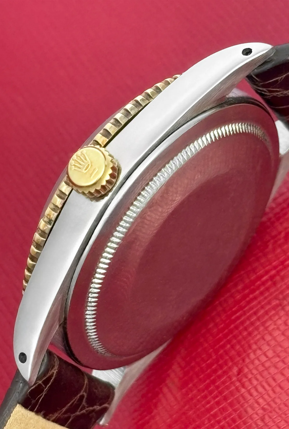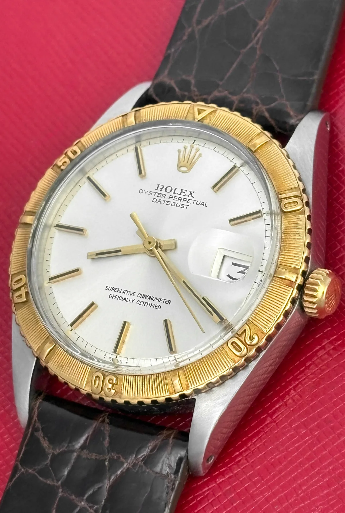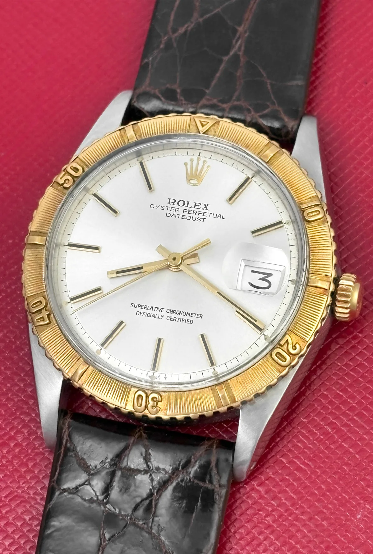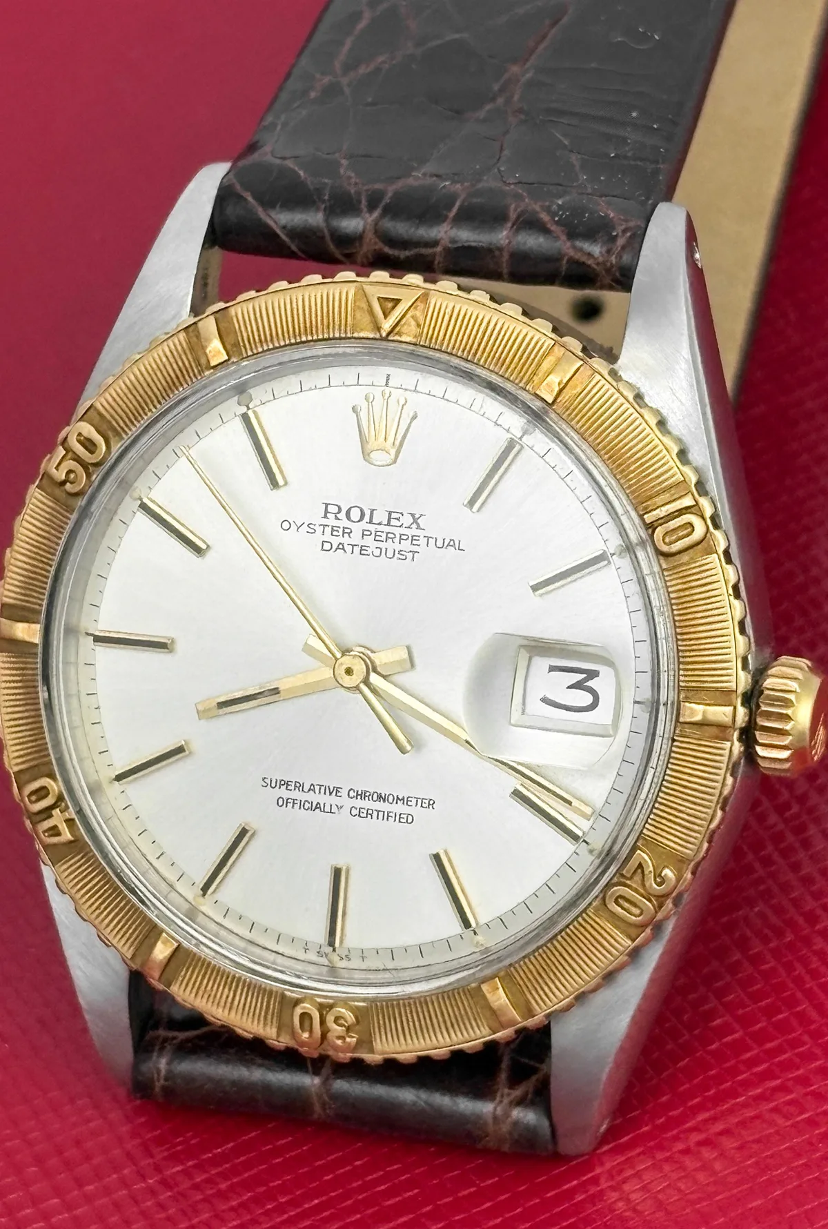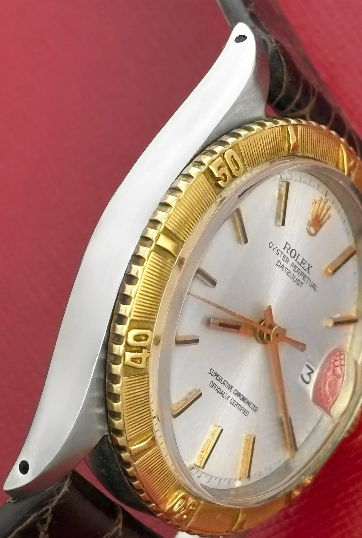 Case Material: Stainless Steel case with 14k Yellow Gold Thunderbird bezel (36mm dia.)