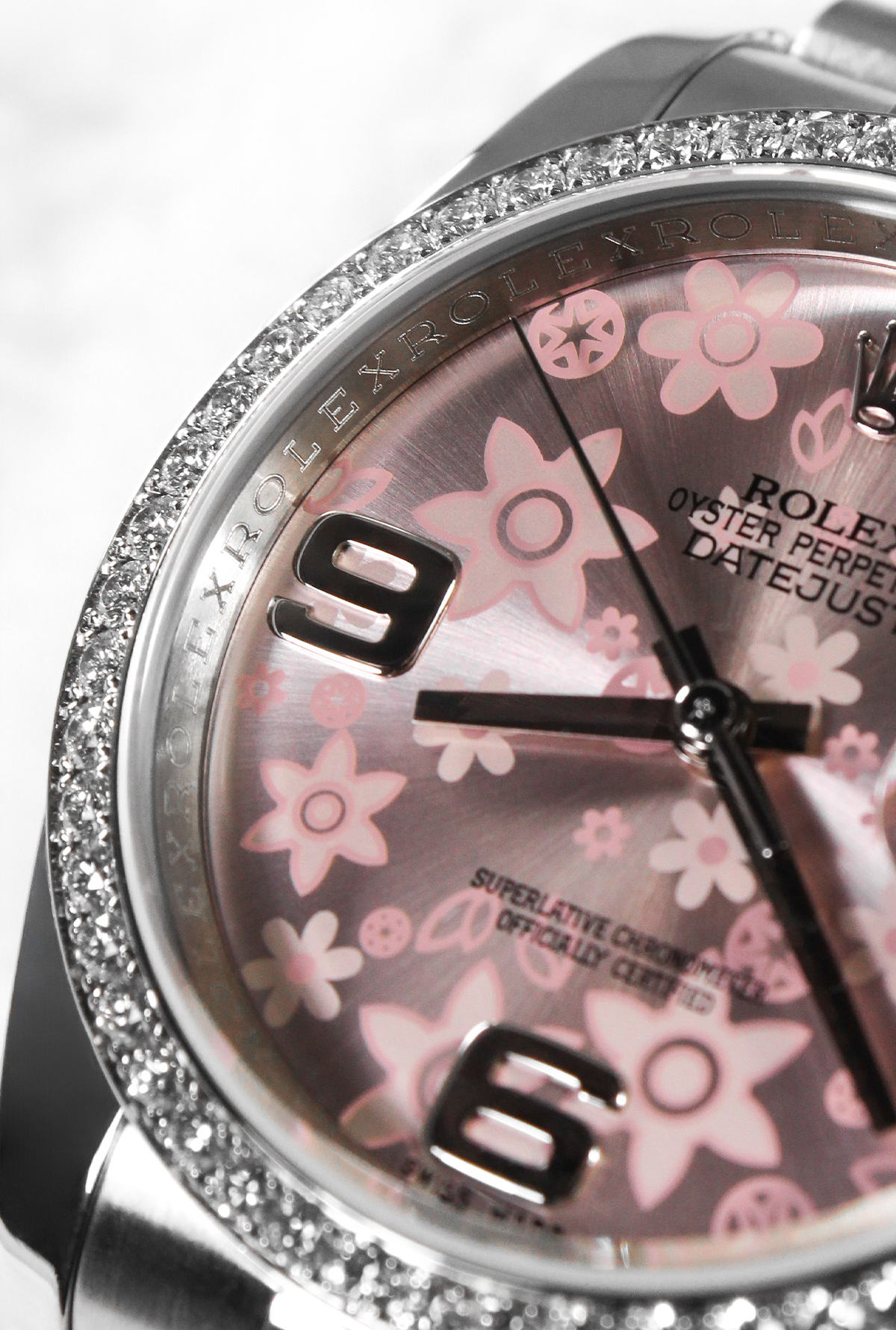 Case Material: Stainless Steel case with Rolex Diamond bezel (36mm dia.)