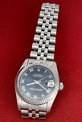 Case Material: Stainless Steel case with 18k White Gold fluted bezel (31mm dia.)