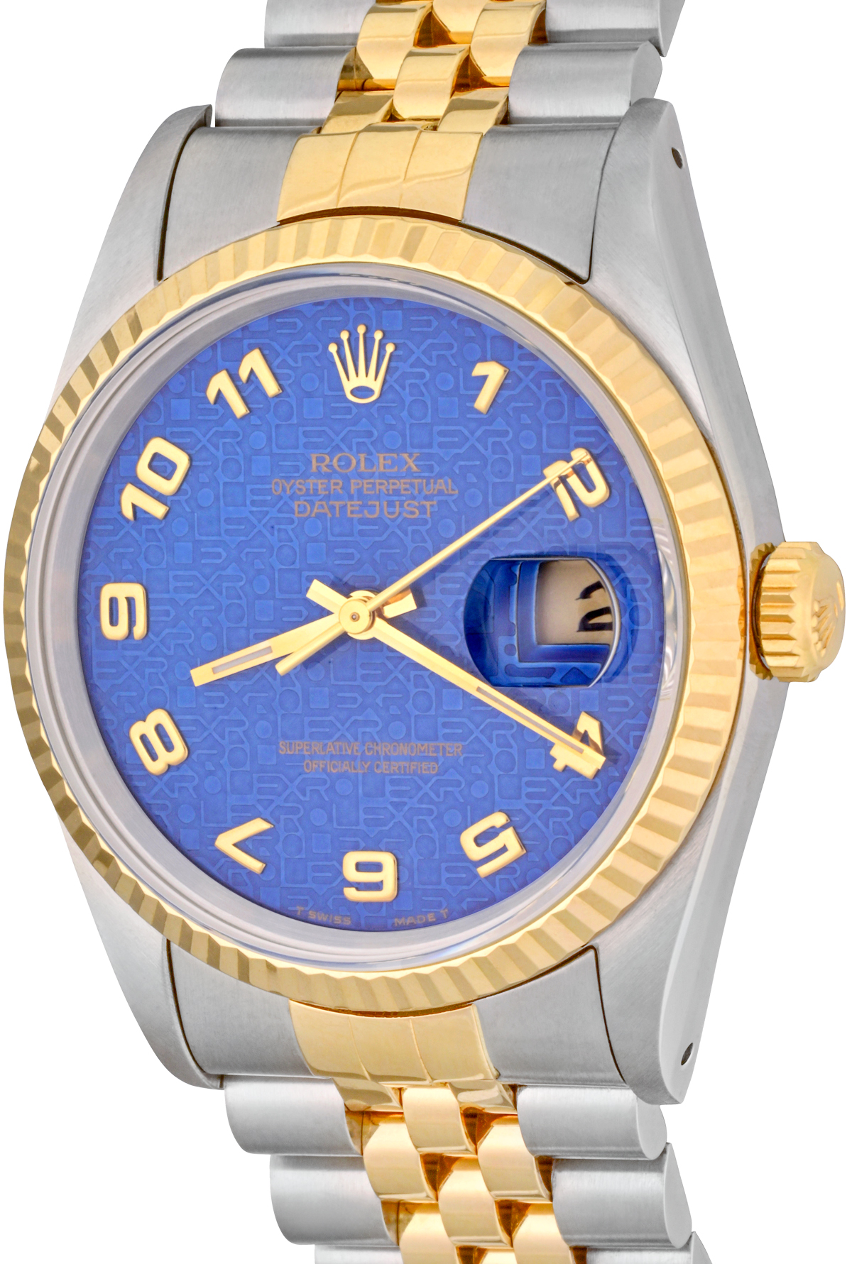Dial: Bright Blue Rolex Jubilee Dial with yellow gold Arabic numerals