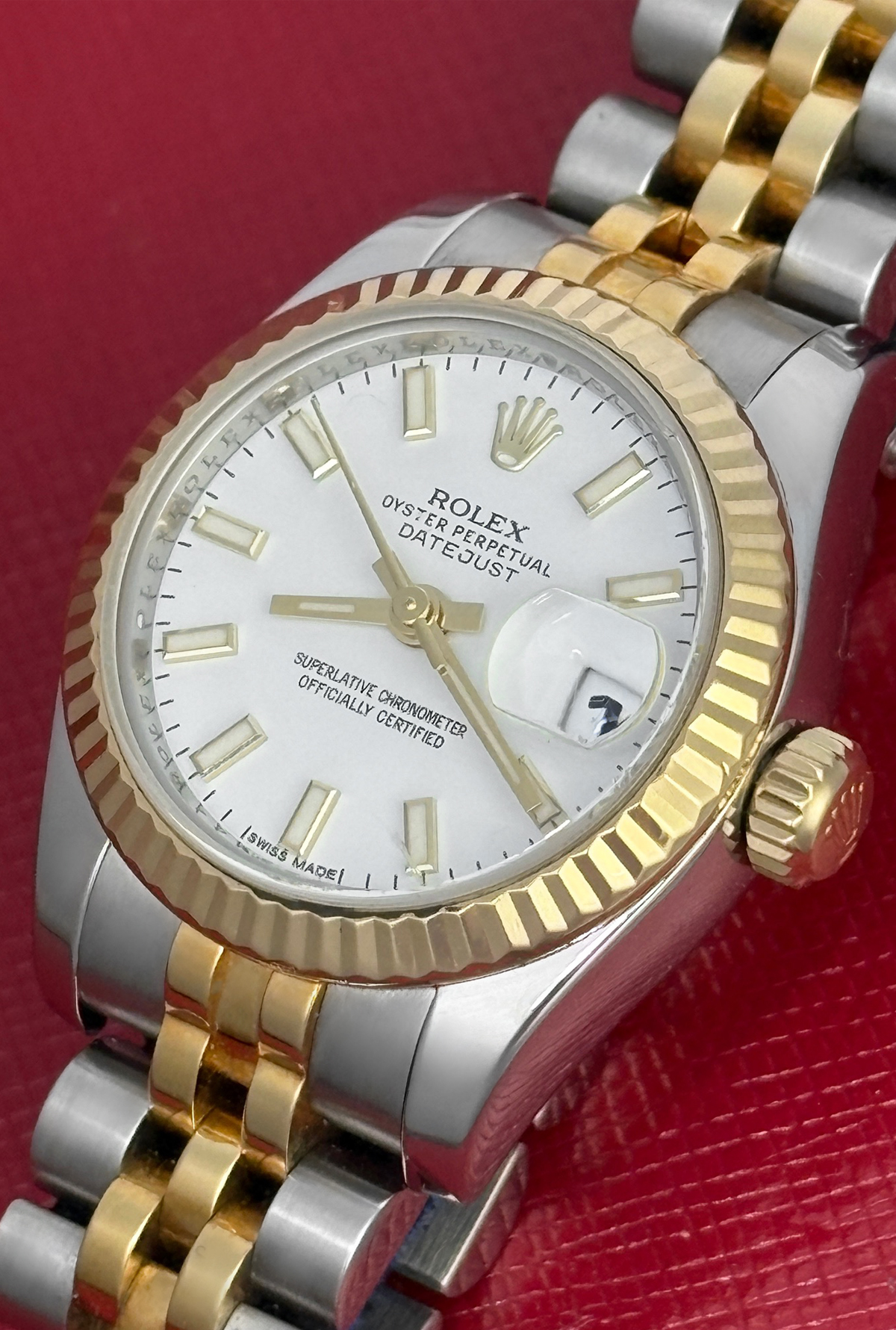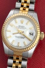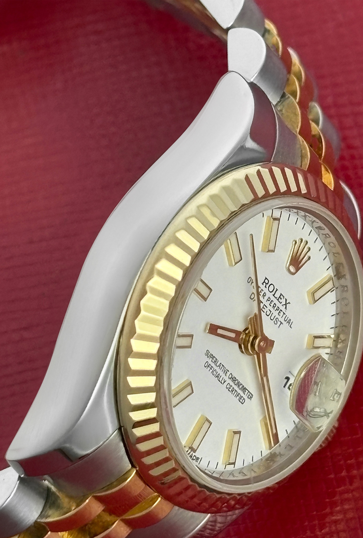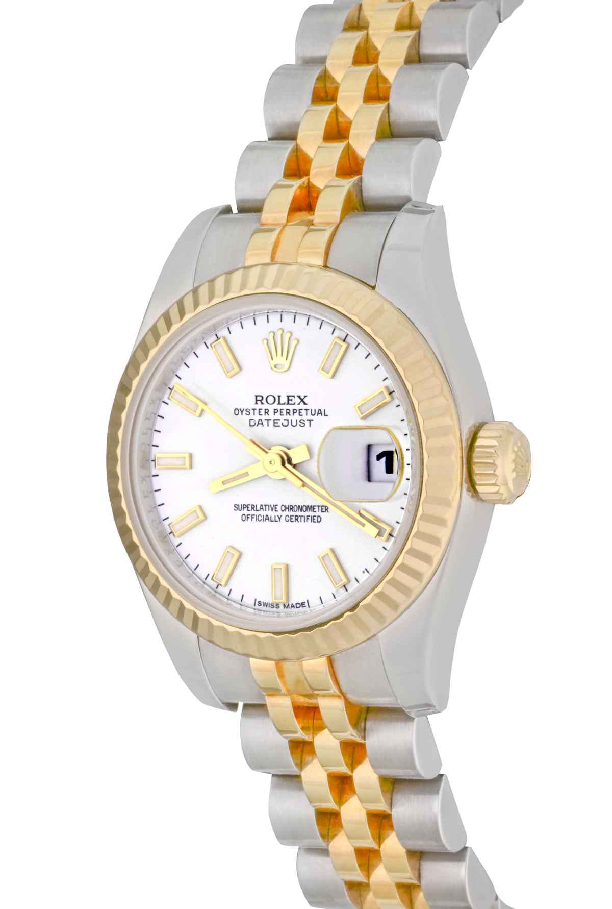 Case Material: Stainless Steel case with 18k Yellow Gold fluted bezel (26mm dia.)