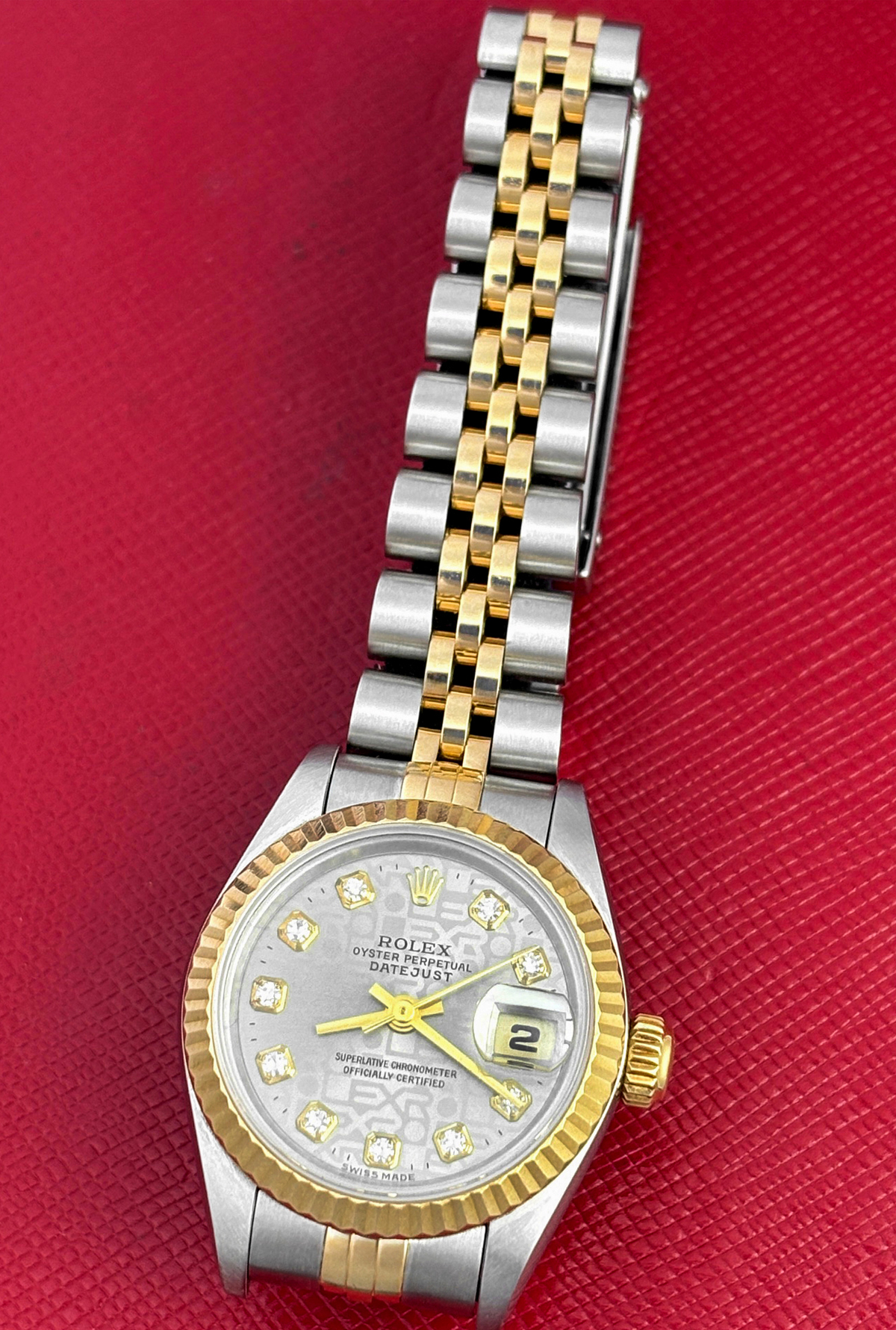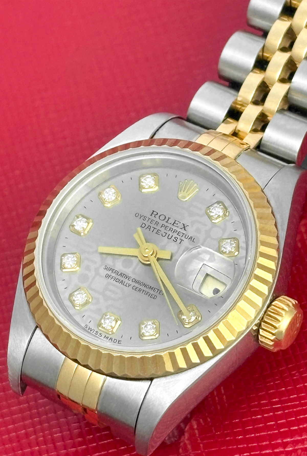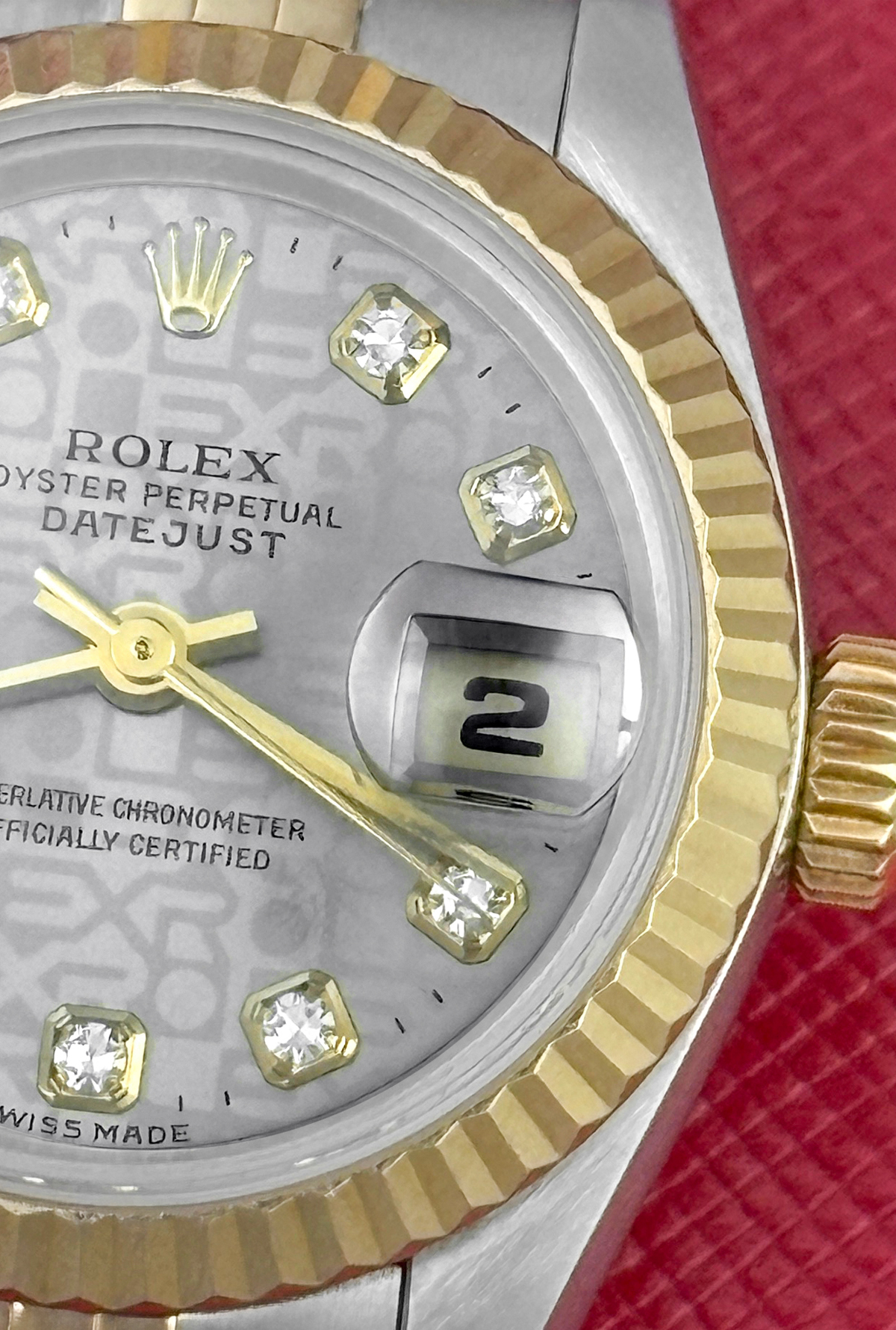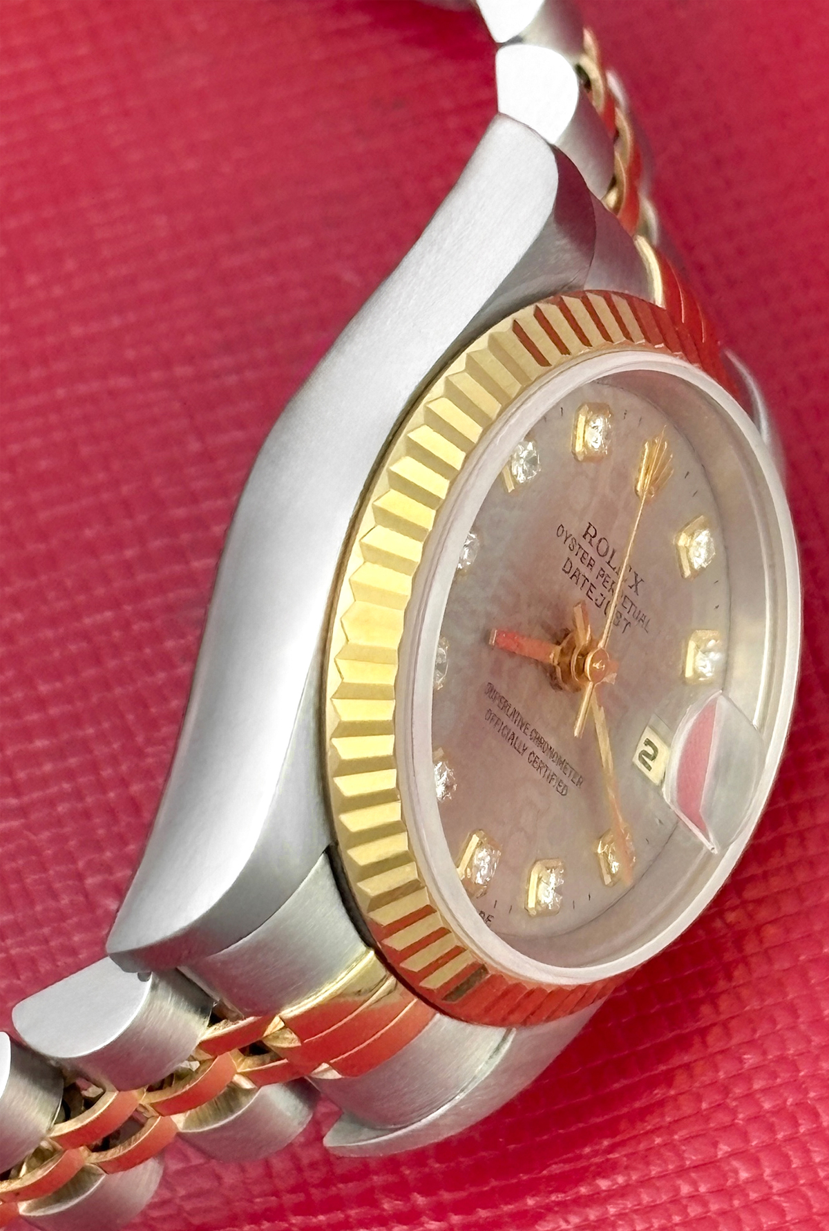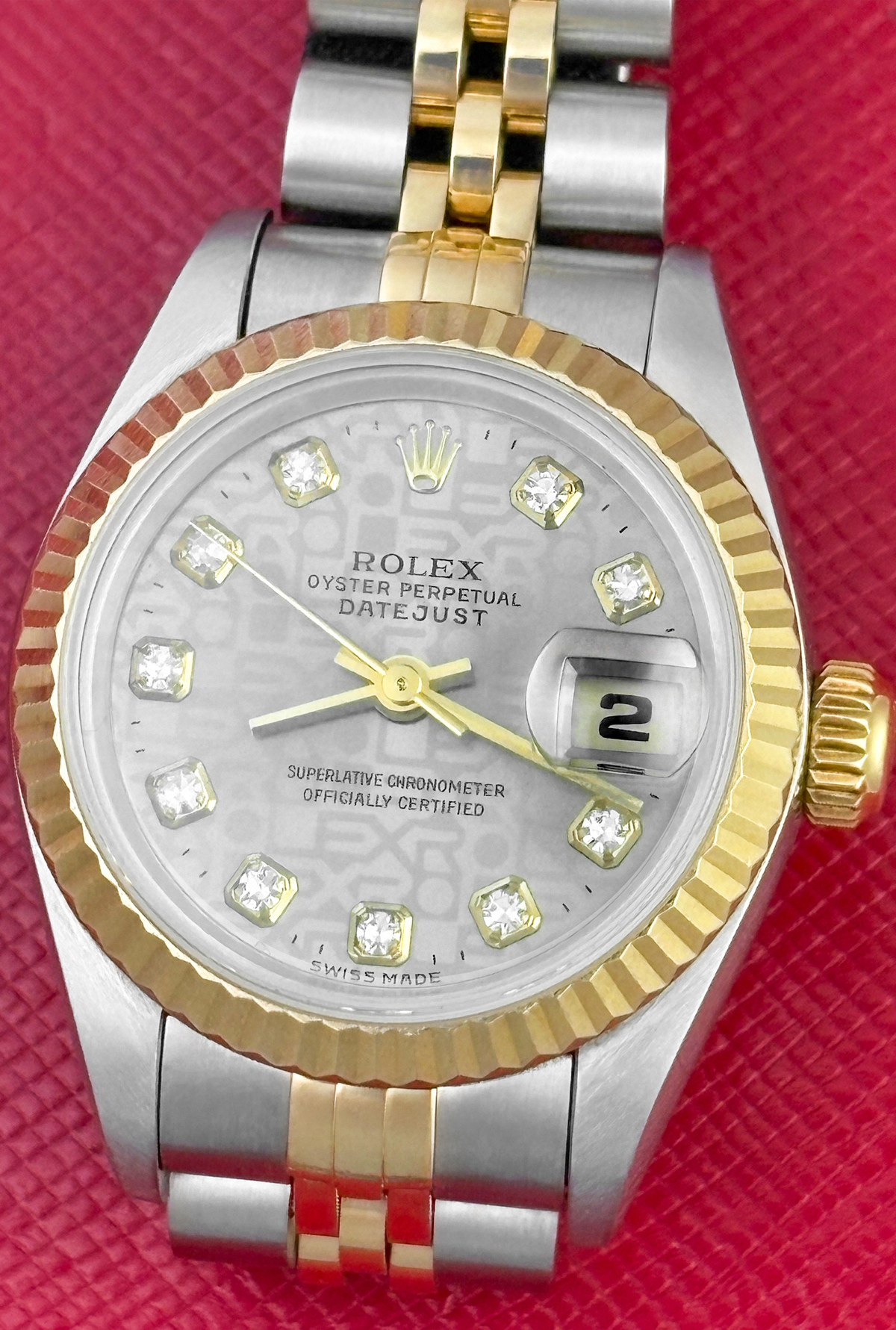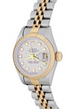 Case Material: Stainless Steel case with 18k Yellow Gold fluted bezel (26mm dia.)