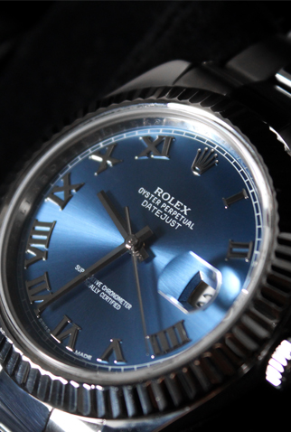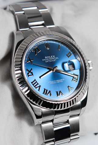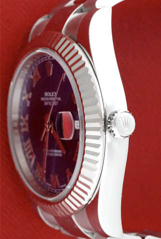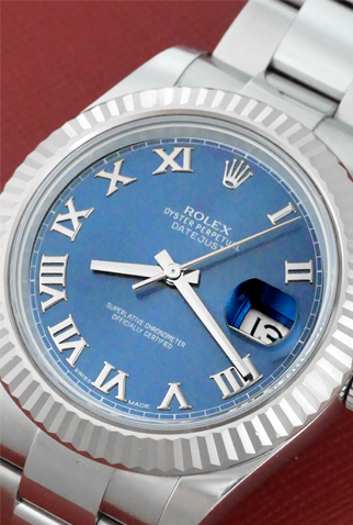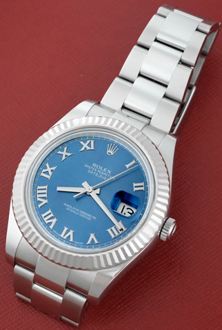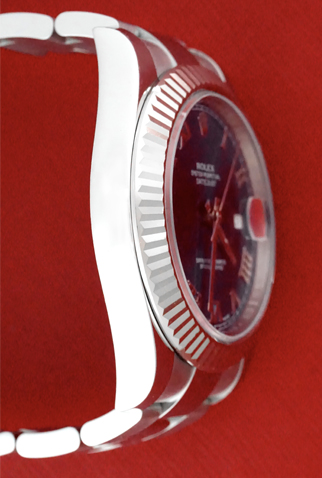 Case Material: Stainless Steel case with 18k White Gold fluted bezel (41mm dia.)