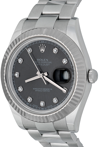 Dial: Gray/Rodium Dial with Rolex Diamond hour markers