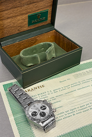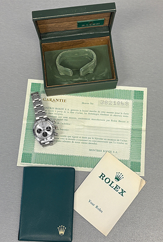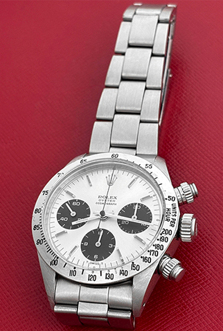 Dial: Silver Dial with polished hour markers signed “Rolex Oyster Cosmograph”