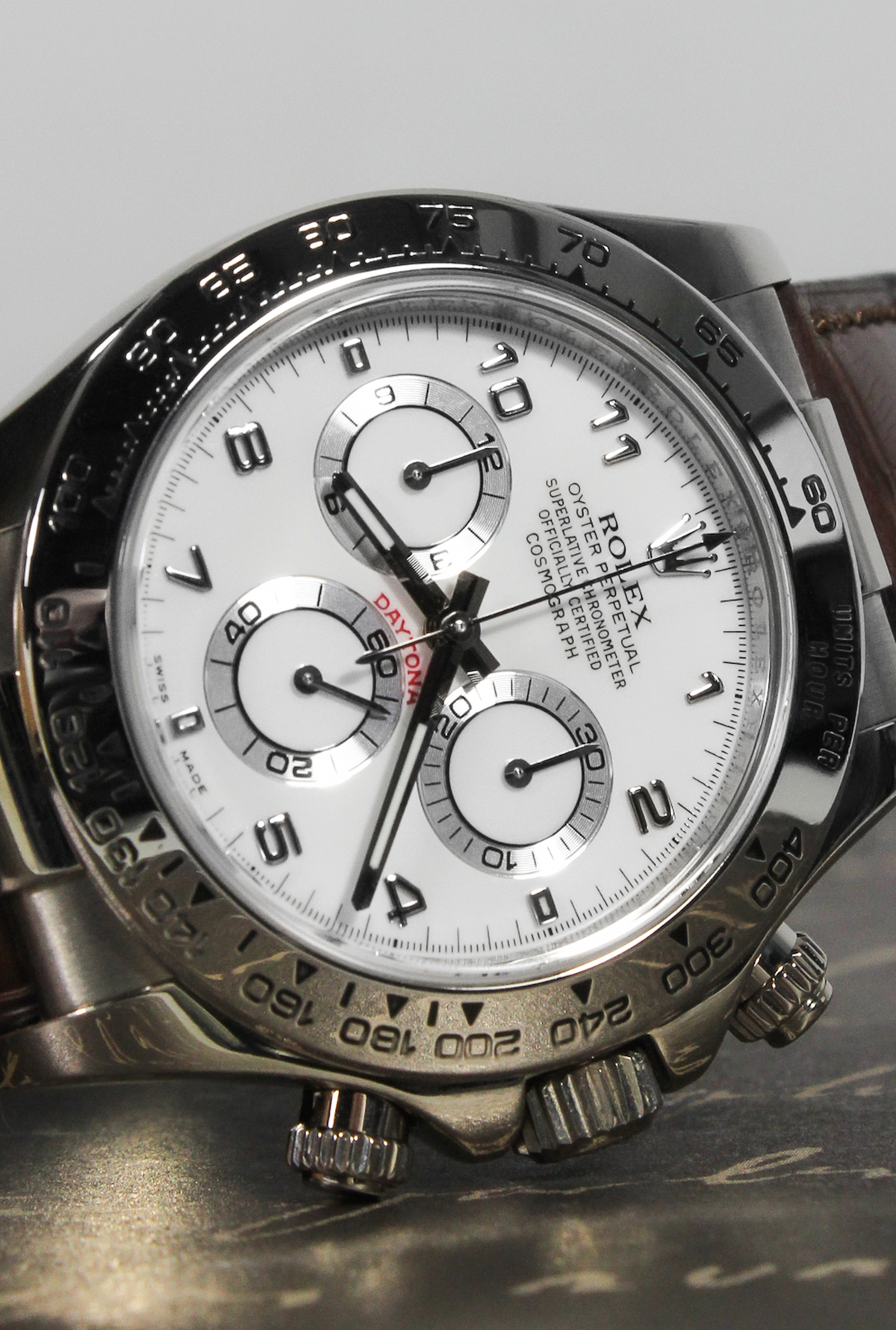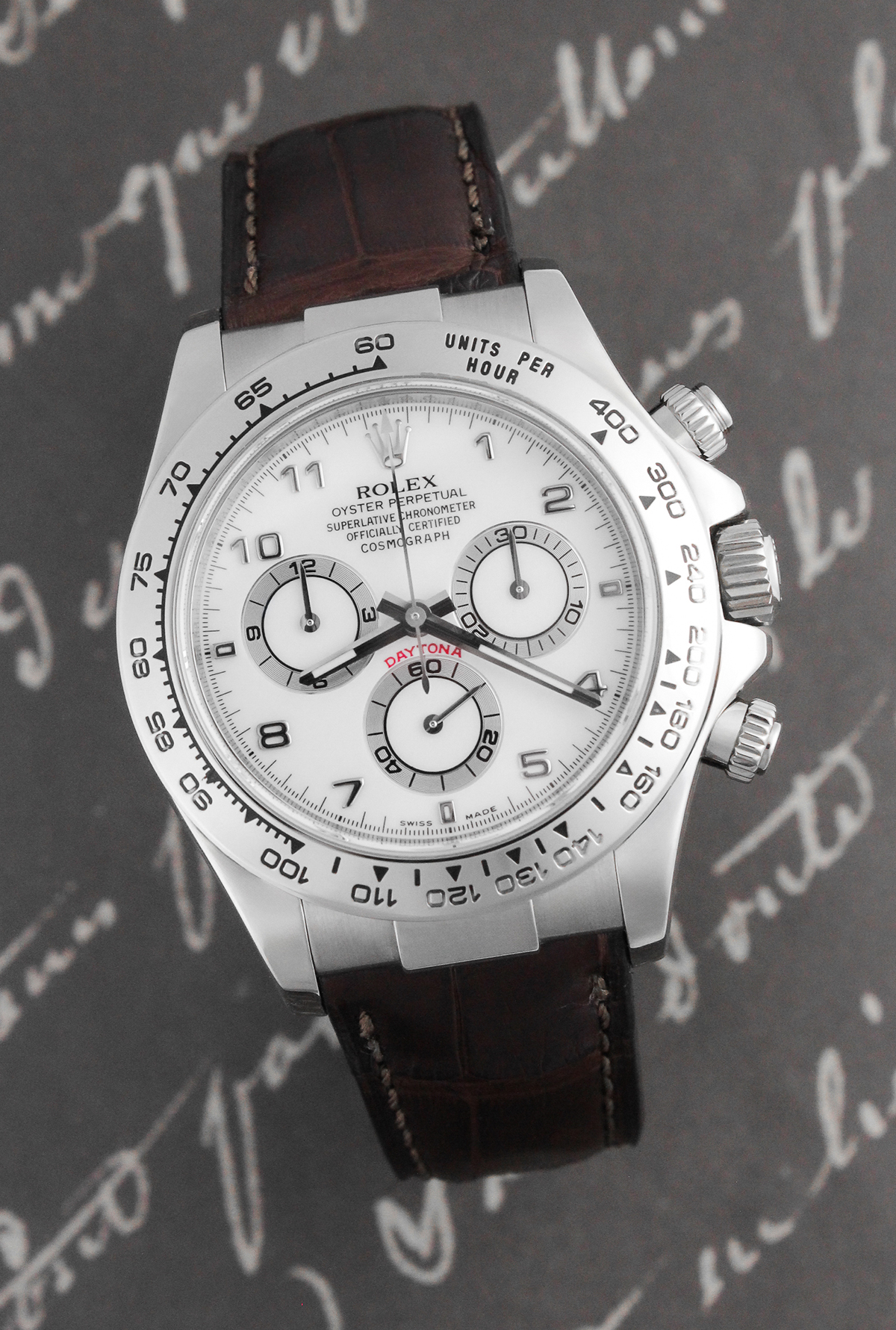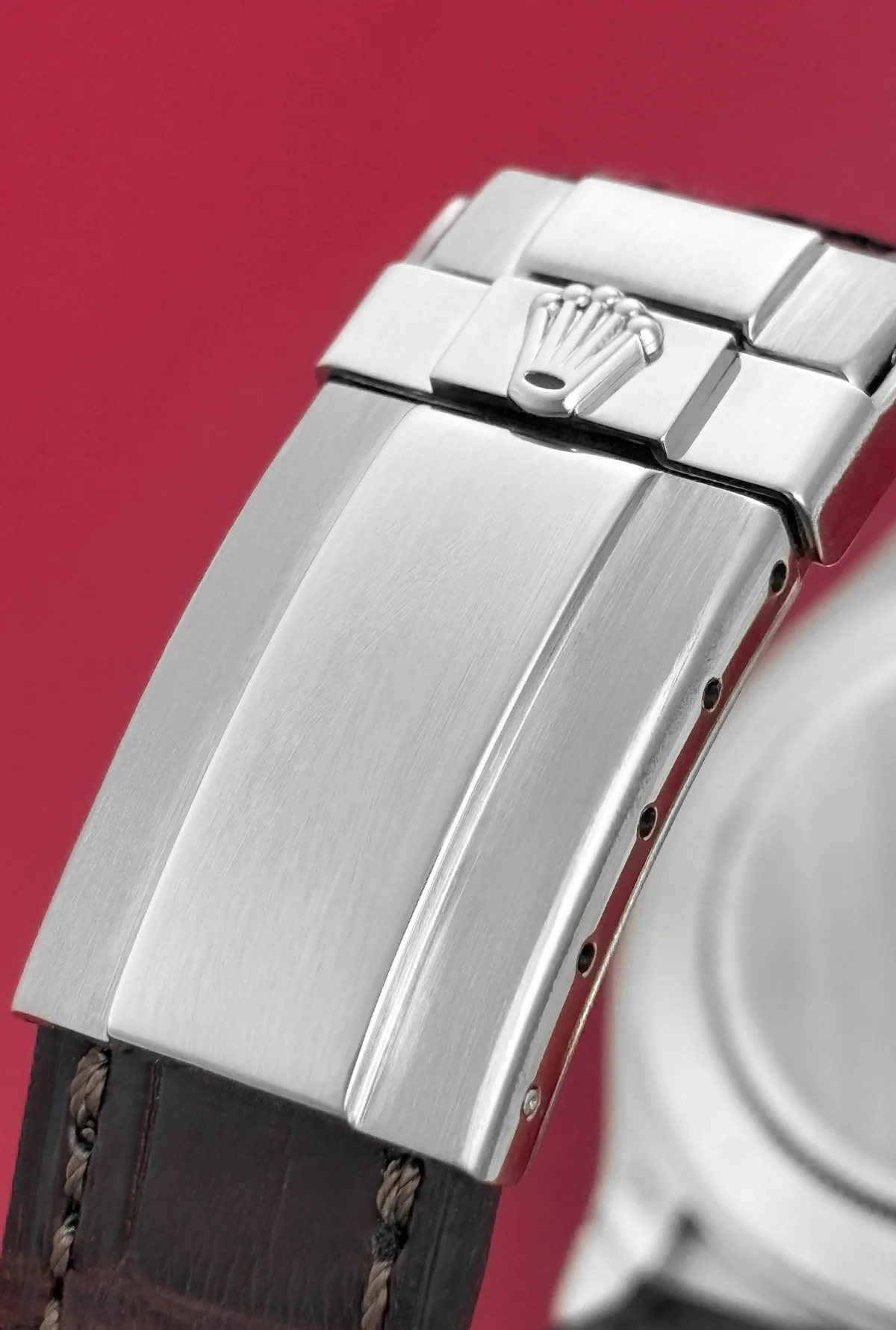 Strap: Brown leather strap with 18k White Gold Rolex deployant clasp