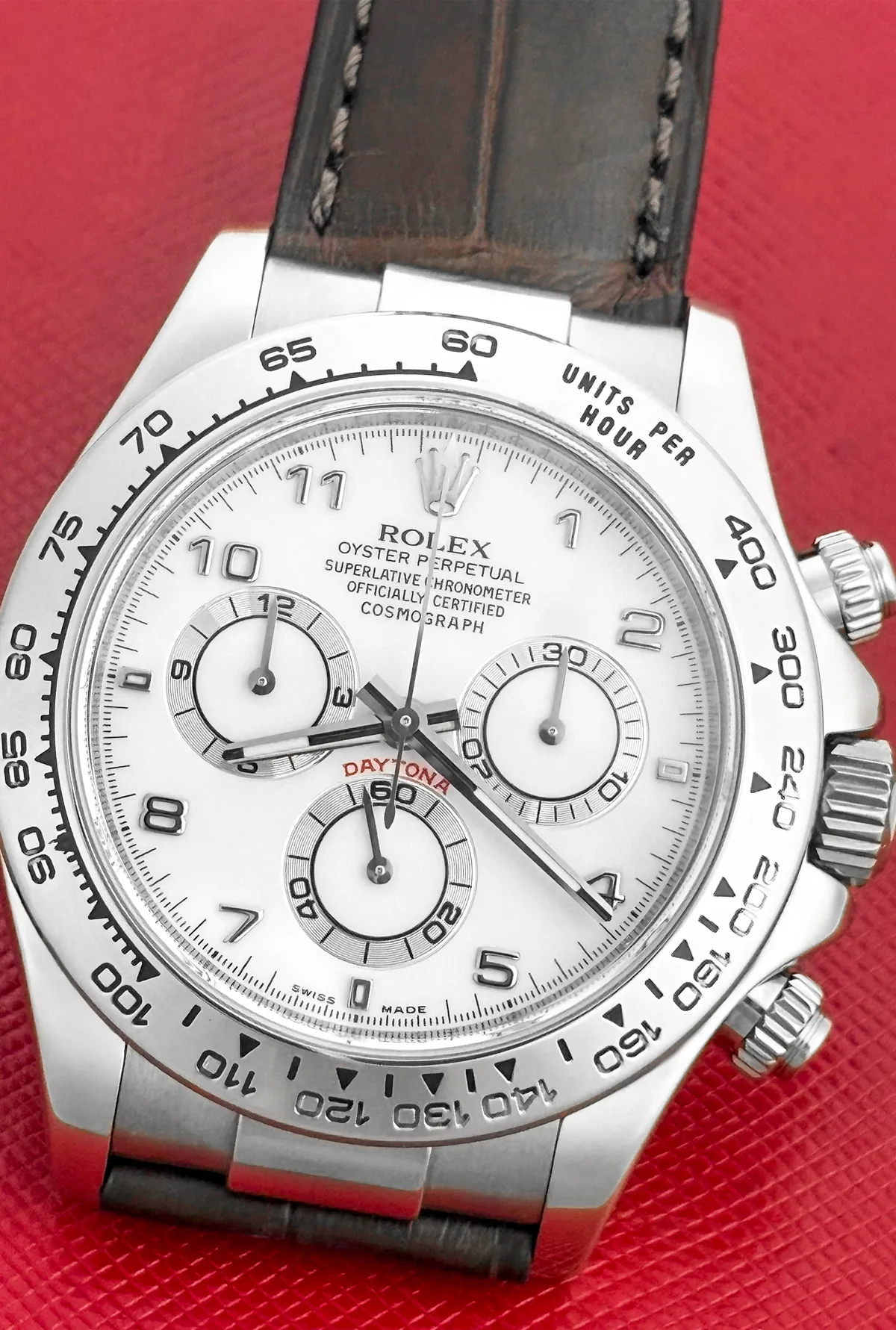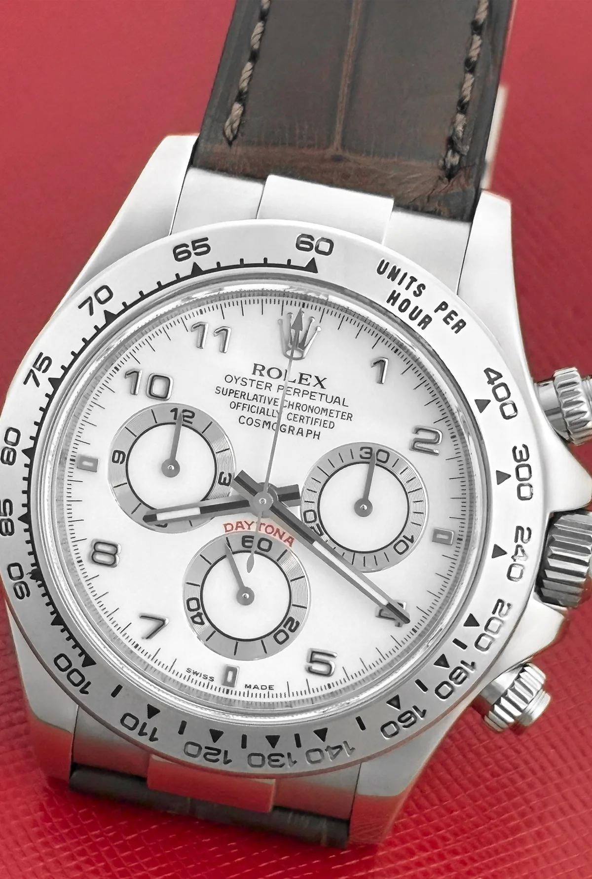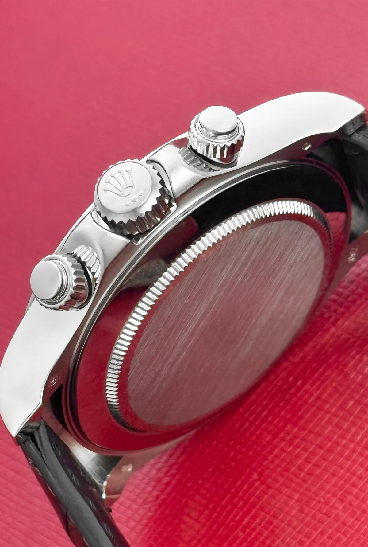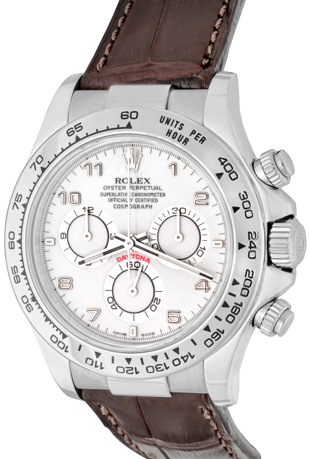 Strap: Brown leather strap with 18k White Gold Rolex deployant clasp