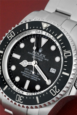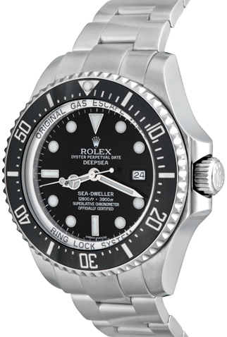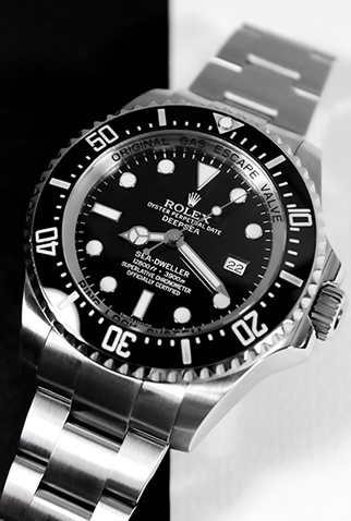 Case Material: Stainless Steel case with ceramic bezel; original “Gas Escape Valve” (44mm dia.). Water Resistant to 12,800 Feet – 3900 Meters
