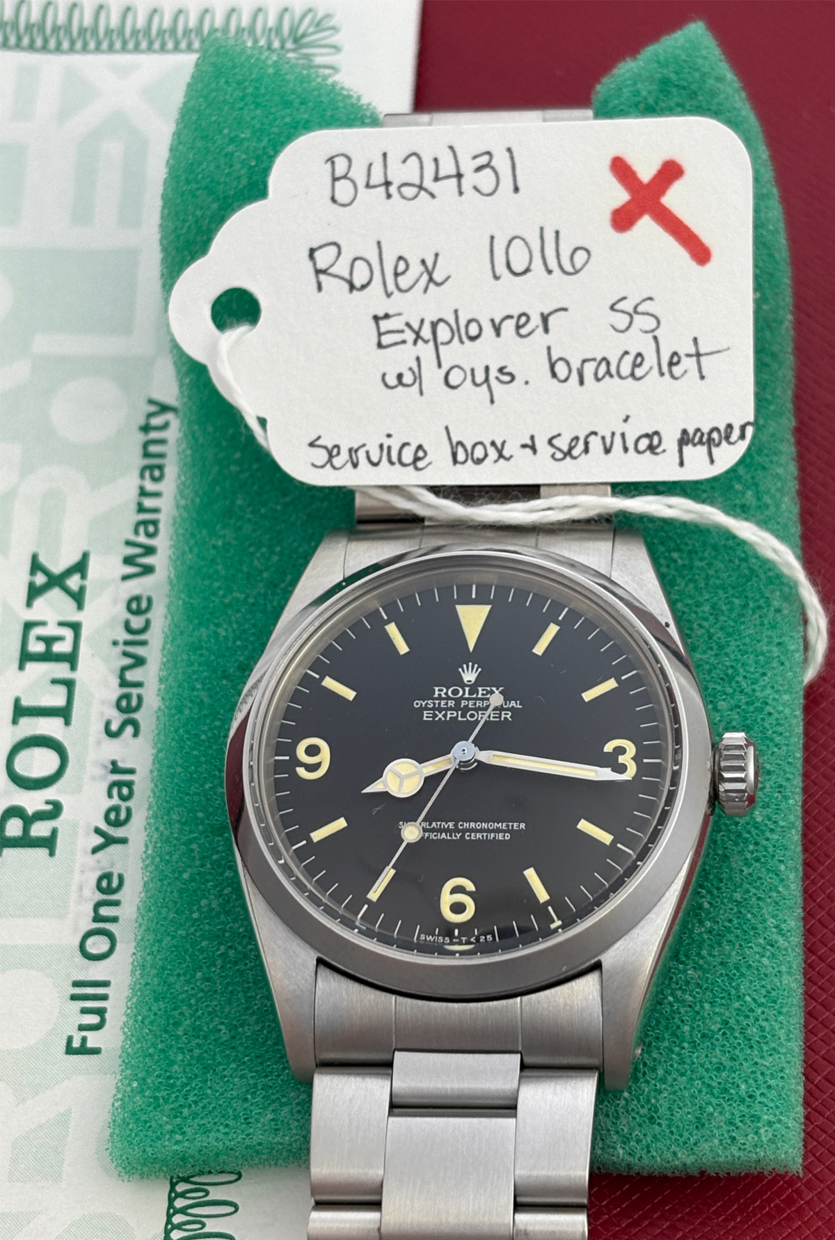 Additional Information: Rolex service box and service papers. Serviced 11/27/96 and never worn after servicing.