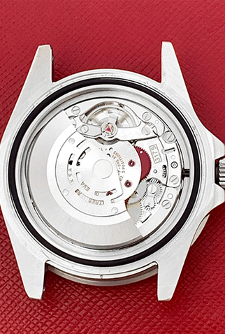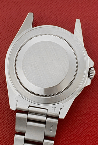 Case Material: Stainless Steel case with red and blue rotating bezel (40mm dia.)