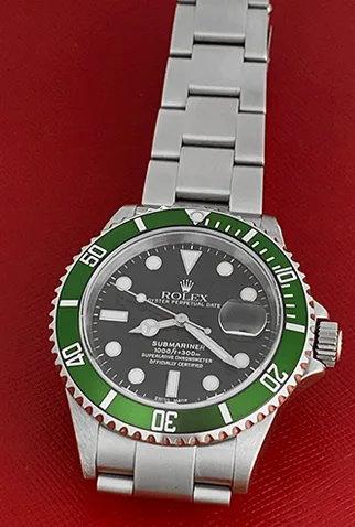 Case Material: Stainless Steel case with green bezel insert (40mm dia.)