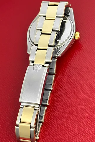 Dial: Oyster Silver Dial with yellow gold hour markers