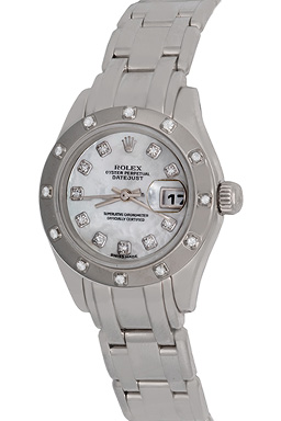 Case Material: 18k White Gold with Rolex Twelve Diamond Bezel (28mm dia.)