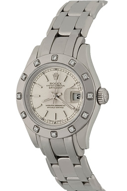 Case Material: 18k White Gold with Rolex Twelve Diamond Bezel (28mm dia.)