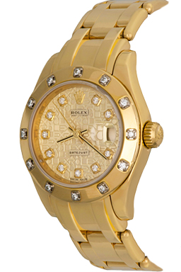 Case Material: 18k Yellow Gold case with Rolex Twelve Diamond Bezel (28mm dia)