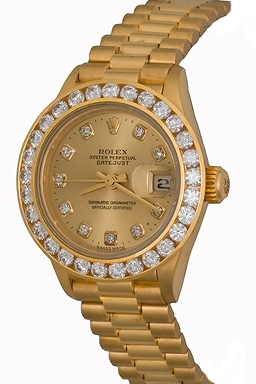 Case Material: 18k Yellow Gold case with beautiful custom 2.15 ct. channel set Diamond bezel (26mm dia.)