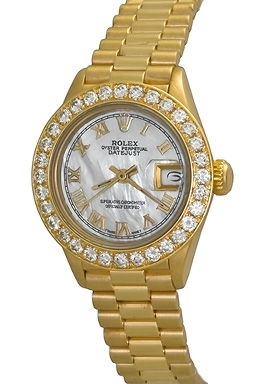 Case Material: 18k Yellow Gold case with 1.6 ct. Diamond bezel (26mm dia.)