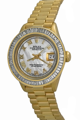 Dial: Mother of Pearl Dial with Yellow Gold Roman numerals