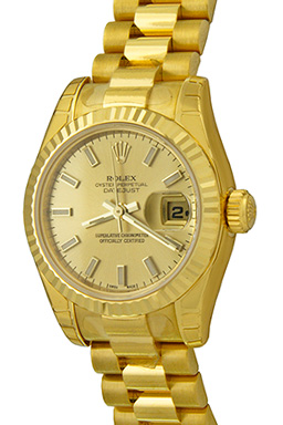 Case Material: 18k Yellow Gold case with fluted bezel (26mm dia.)