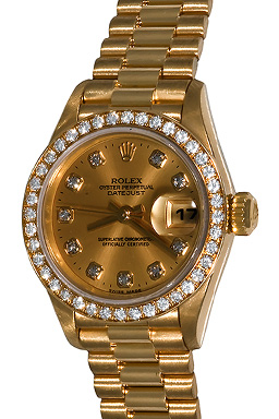 Case Material: 18K Yellow Gold case with Rolex Diamond bezel (26mm dia.)