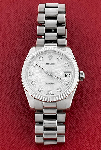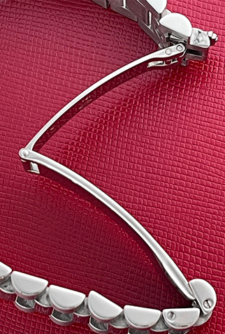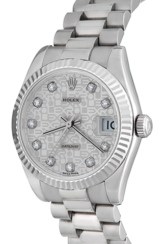 Case Material: 18k White Gold Case with 18k White Gold fluted bezel (31mm dia.)