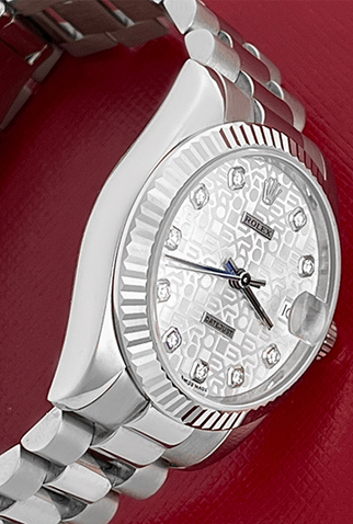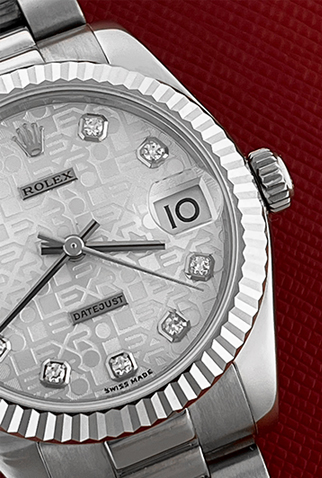 Dial: Oyster Silver Rolex Jubilee Dial with Rolex Diamond hour markers