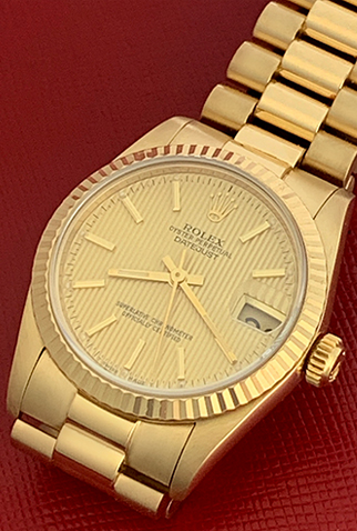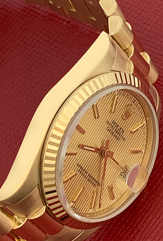 Case Material: 18k Yellow Gold case with fluted bezel (31mm dia.)