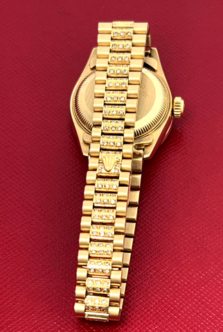 Case Material: 18k Yellow Gold case with custom Diamond bezel (26mm dia.)