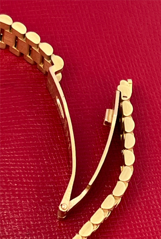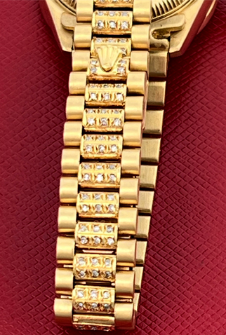 Bracelet: 18k Yellow Gold hidden clasp President bracelet with custom Diamond center links (six diamond on each link)