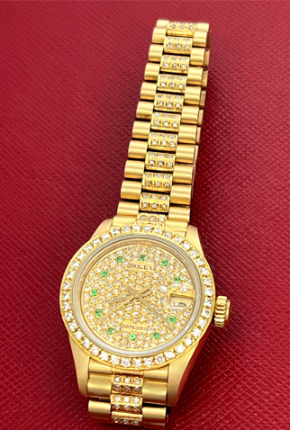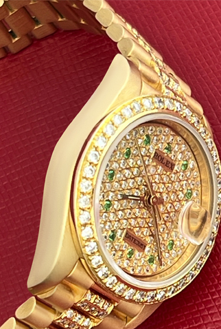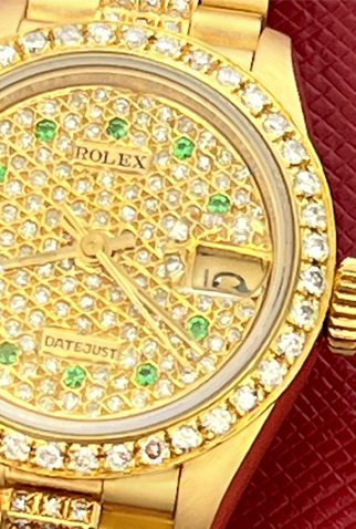 Dial: Custom Full Pave Diamond Dial with custom Emerald hour markers