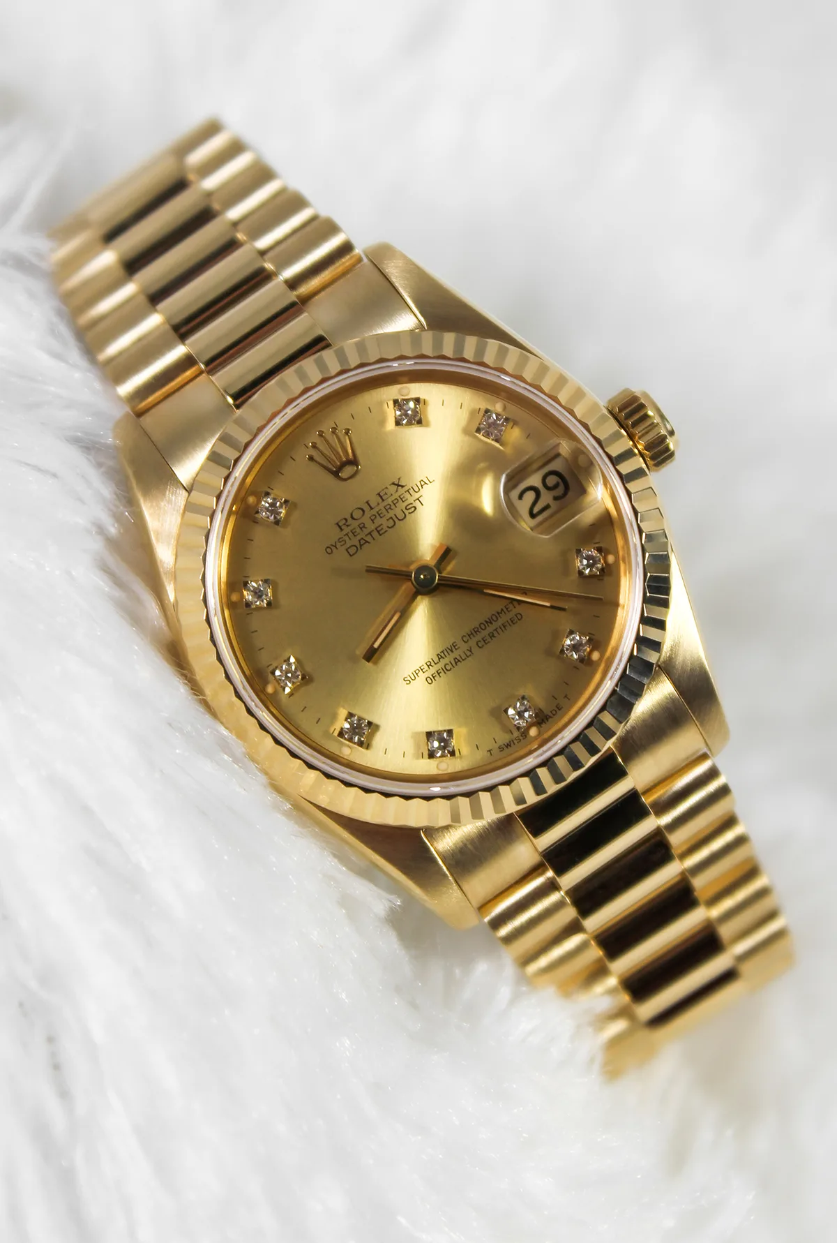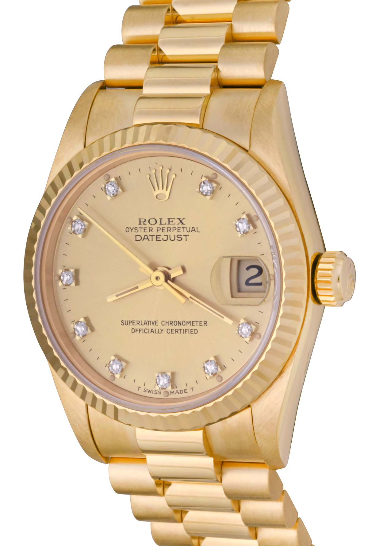 Dial: Champagne Dial with Rolex Diamond hour markers