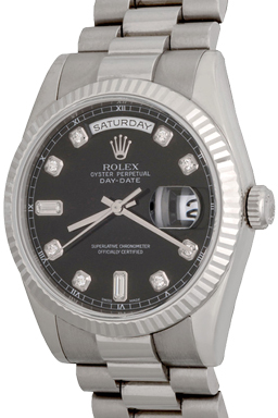 Dial: Black Dial Rolex round and baguette Diamond hour markers