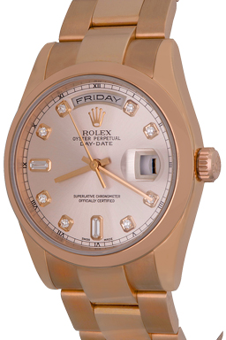 Dial: Silvered/Rose Dial with Rolex Diamond hour markers (8 rounds/2 baguettes)