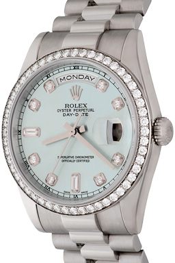 Case Material: Platinum case with Rolex Diamond bezel (36mm dia.)