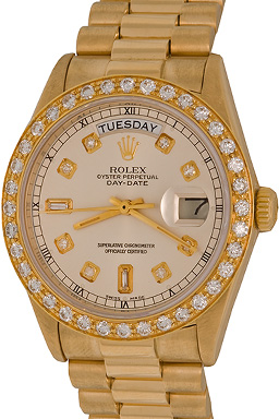 Case Material: 18k Yellow Gold case with custom 1.6 ct. Diamond bezel (36mm dia.)
