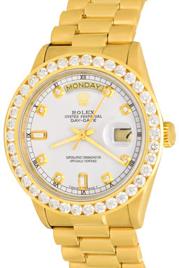 Case Material: 18k Yellow Gold case with custom 3.00 ct. channel set Diamond bezel (36mm dia.)