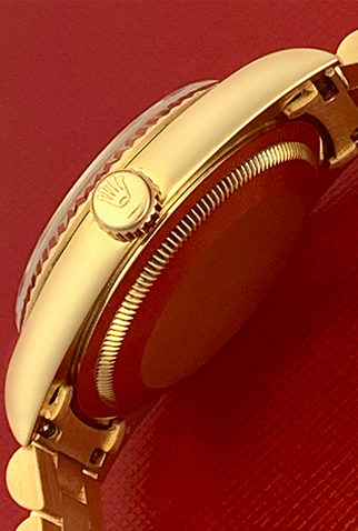 Case Material: 18k Yellow Gold case with custom 2.15 Ct. Diamond bezel (36mm dia.)