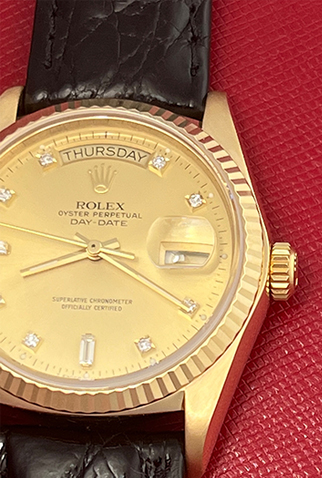 Dial: Champagne Dial with Rolex Diamond hour markers (8 rounds/2 baguettes)