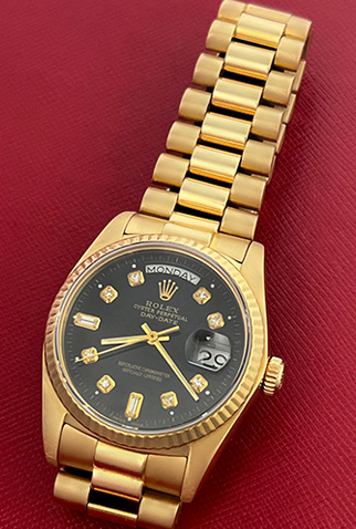 Dial: Black Dial with 8 round & 2 baguette custom Diamond hour markers