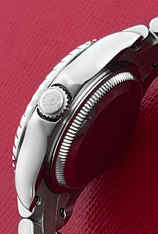 Case Material: Stainless Steel case with Platinum bezel (29mm dia.)