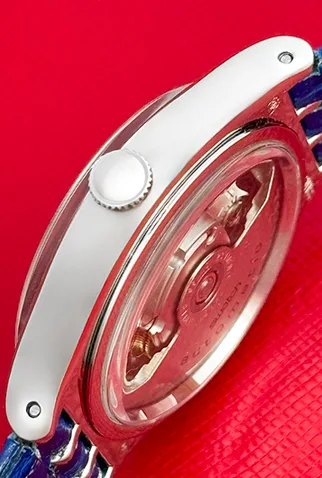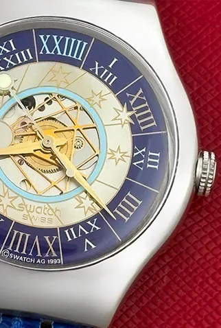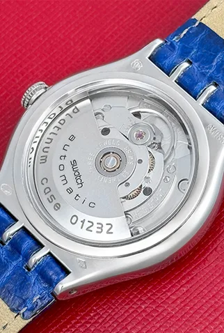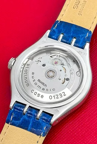 Movement Details: Circa 1993 Special Platinum Swatch Edition with 23 Jewel Automatic Movement. This watch was made to commemorate the 10th Anniversary of Swatch. It’s the only Swatch they made in platinum, and it was equipped with an automatic ETA movement
