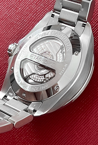Case Material: Stainless Steel with exposition back to view movement (42.5mm dia.). Water-Resistant to 100 Meters – 330 Feet